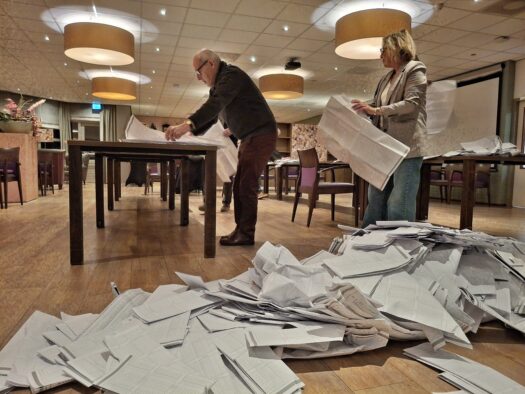 HARDENBERG – De stembussen zijn gesloten. De stembiljetten lagen kort na 21.00 uur op de grond en daarna op tafels.