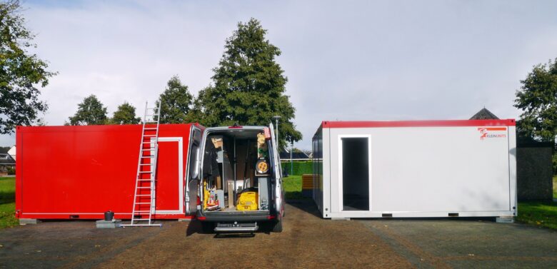 DEDEMSVAART – De stembureaus zijn gearriveerd op de parkeerplaats van zwembad De Kiefer in Dedemsvaart. Het zijn tijdelijke units.
