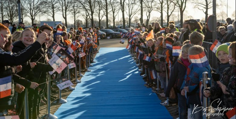 De Krim straalt van trots tijdens het bezoek van de koning. Het was gelukkig droog, maar steenkoud op de vlakte bij MFA De Beuk. Ondanks de kou werd de koning feestelijk ontvangen. Langs de blauwe loper stonden basisschoolkinderen met vlaggetjes te zwaaien. Daarachter was een vak vrij gemaakt voor de vele bezoekers uit De Krim en omstreken, die de kou trotseerden om de koning te kunnen verwelkomen.