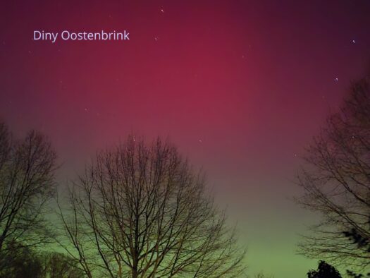 HARDENBERG – De avondlucht bood maandagavond een grotere spektakel dan tijdens oud en nieuw. De natuur zorgde boven de gemeente Hardenberg voor eigen vuurwerk en lichteffecten. Het noorderlicht was goed te zien. Diverse inwoners delen hun foto’s.
