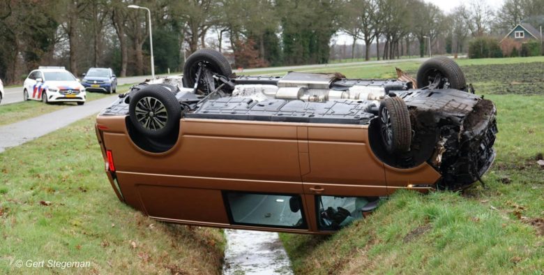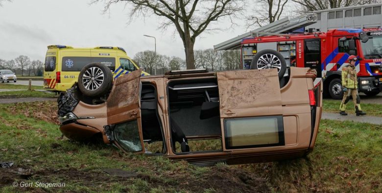 Op de Hardenbergerweg in Brucht is dinsdagmorgen rond 9.20 uur een busje van de weg geschoten. Het voertuig eindigde op de kop boven een sloot. De automobiliste raakte door onbekende oorzaak van de weg. Het busje vloog over het fietspad naast de weg en kwam op de kop boven een sloot te liggen.