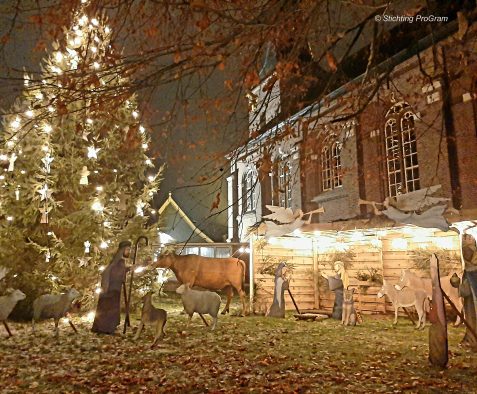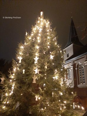Bij de Boomhofkerk staat een fors uit de kluiten gewassen kerstboom en een kerststal. Stichting ProGram (promotie Gramsbergen) zorgt hier al vele jaren voor. De boom, geschonken door de familie Rozema uit Bergentheim, hangt vol met kerststerren en engelen. “Zo gaan we stralend richting Kerst en het nieuwe jaar”, zegt ProGram-voorzitter Ronald Belser.