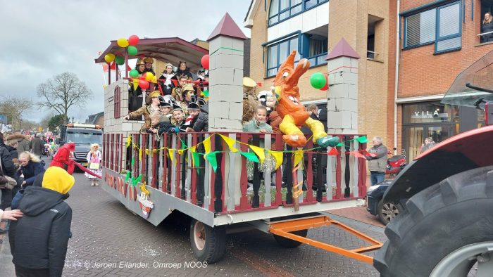 En deze optocht werd zaterdag 18 februari gehouden. Voor velen is de optocht in februari de enige echte. En dat het carnaval nu eindelijk weer zonder beperkingen gevierd mag worden, was duidelijk te merken aan de stemming. Het werd een groot feest en de praalwagens waren flink uitgedost.