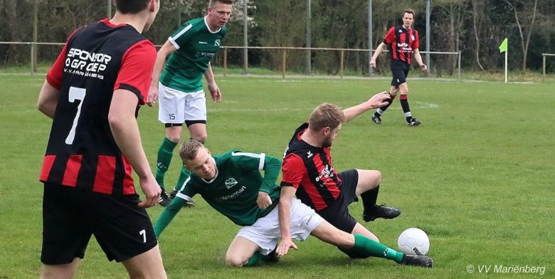 Beide ploegen speelden zaterdag niet hun beste wedstrijd. De bal wilde er niet in, behalve dan de penalty in het voordeel voor de thuisspelende ploeg. Echter met deze uitslag is de nederlaag voor Mariënberg een feit. De roodzwarten zullen de volgende wedstrijd beter voor de dag moeten komen, want de ploeg zakt in de ranglijst van de 3e klasse D naar de 11e plek. Daarmee wordt de kans op degradatie steeds waarschijnlijker.