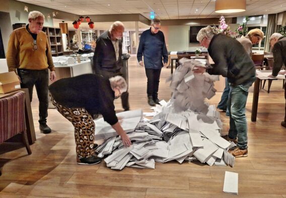 HARDENBERG – De stembussen zijn gesloten. De stembiljetten lagen kort na 21.00 uur op de grond en daarna op tafels.