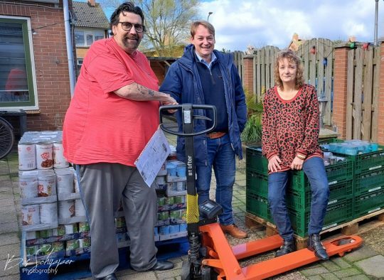 De stichting krijgt steeds meer giften van leveranciers. Daar zat ook een pallet met hondenvoer bij van wel 1000 kilo. Hierdoor ontstond er toch een probleem: hoe verplaats je zulke zware goederen zonder hulp? Daar wist Toyota uit Ede wel raad mee.