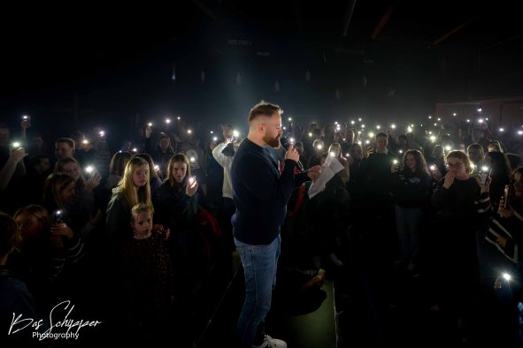 Niels Westrik leidde de dienst op charismatische wijze, waarbij hij perfect aansloot bij het massaal aanwezige jonge publiek. Het thema van de avond was ‘Glow’, een uitnodiging om te schijnen in het licht van God. De boodschap was duidelijk: om te stralen, moesten de jongeren bereid zijn hun zonden achter zich te laten. Opvallend was de massale respons van jongeren die naar voren kwamen om voor dit doel te laten bidden.